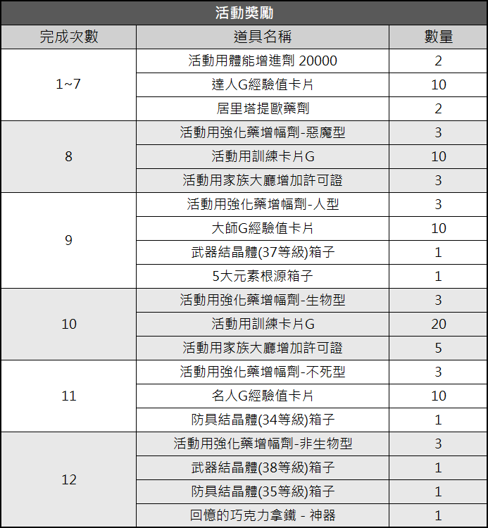 實際獲得之道具及道具數量,請以遊戲實際領取為準。