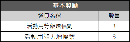 ※利用活動力一次性使用的功能,活動道具僅算一次進入的獲得數量。