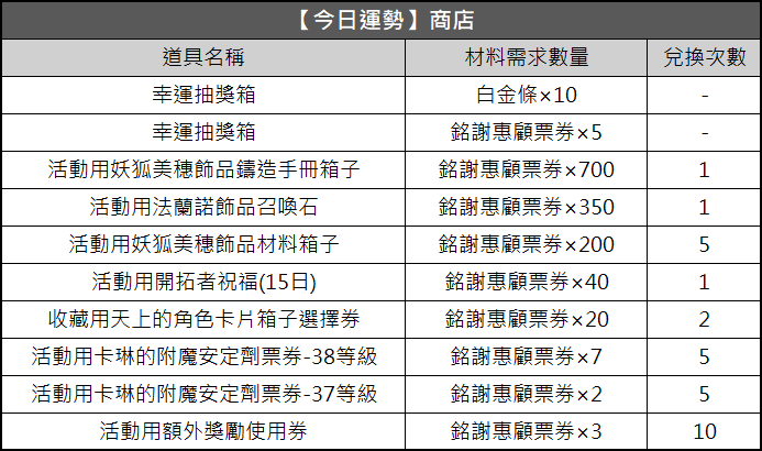 *家族等級需達15(含)以上才可開啟[【今日運勢】商店]