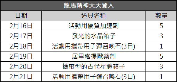 實際獲得之道具及道具數量,請以遊戲實際領取為準。