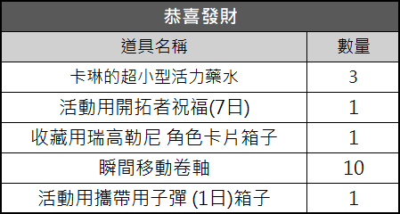 1.於活動期間內至序號兌換頁面輸入【恭喜發財】進行兌換即可獲得獎勵!!