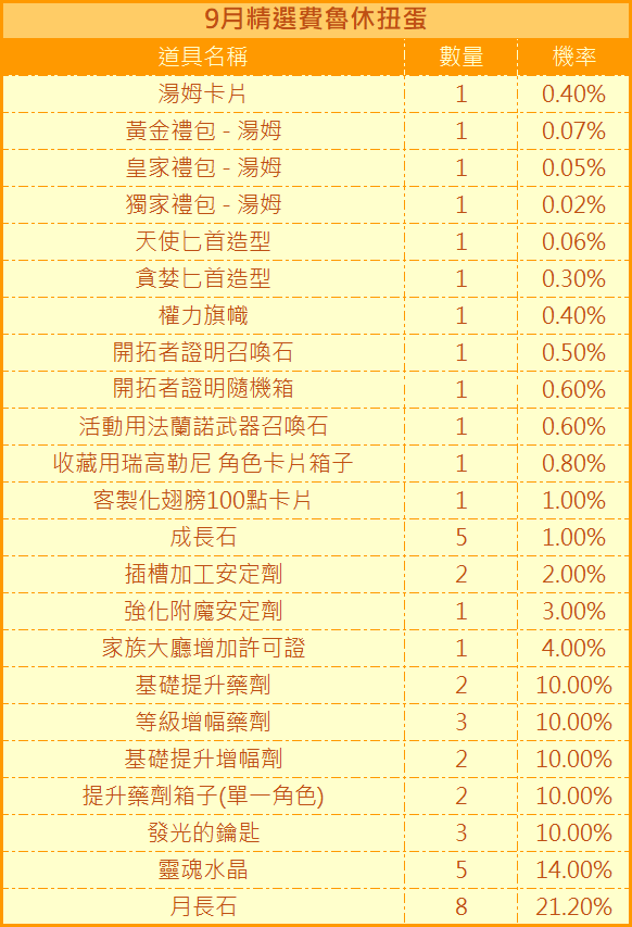 ※此扭蛋與林頓箱子不同,故請開拓者們要留意一下扭蛋的獎勵數量以及機率喔!