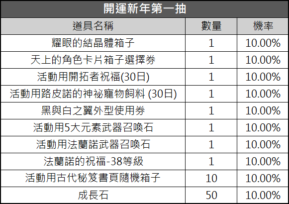 實際獲得之道具及道具數量,請以遊戲實際領取為準。
