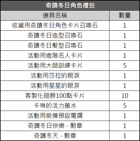 ~奇蹟冬日復刻禮包~