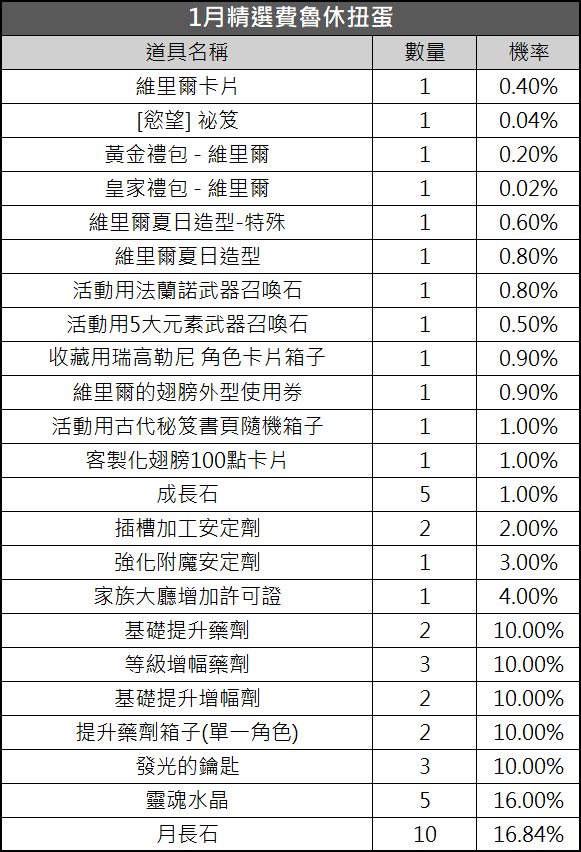 ※此扭蛋與林頓箱子不同,故請開拓者們要留意一下扭蛋的獎勵數量以及機率喔!
